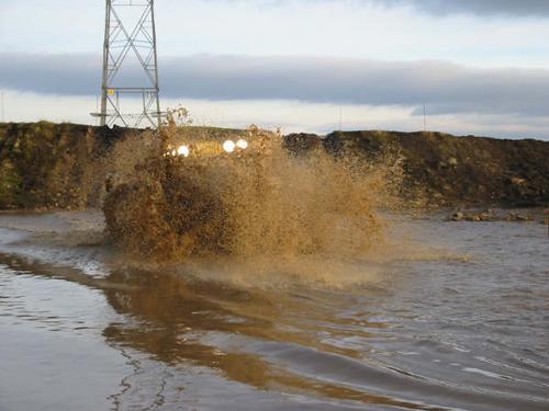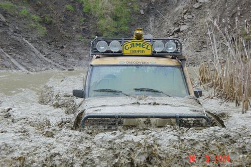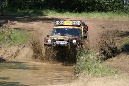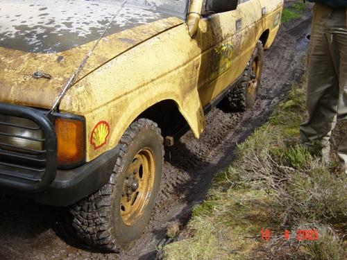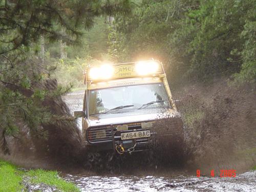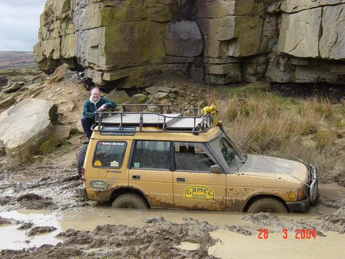 Not me winching anymore because the winch burnt out. Doh! Snatch recovery by Tony and Graham in their 1996 Disco raft unit strapped to Bob Ives's 1997 110.